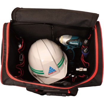 抜群の収納力!外側・内側に28個のポケットやホルダー付き大きな開口部で道具の出し入れがよりスムーズ!片手でもラクに持てる頑丈な”持ち手”付き持ち運びをより快適に軽量で滑らかな伸縮アルミハンドル・高耐久ホイール搭載で地面が不安定な場所や工事現場でも道具の持ち運びができます。