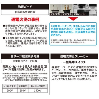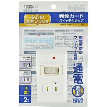 発煙ガード搭載 スイッチ付き雷サージ対応タップ 2個口