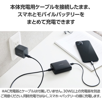 本体充電用ケーブルを接続したままで、スマートフォンとモバイルバッテリーを充電できる”まとめて充電”に対応しています。
