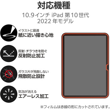 iPad (第10世代 2022年モデル)の画面を傷や汚れから守る、指紋防止、反射防止、紙心地フィルムタイプの画面保護ガラスフィルムです。特殊表面形状デザインにより、ケント紙に鉛筆で描いたような描き心地を実現します。