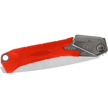ワンランク上の折込鋸。従来の折込200から一新。アサリなし目立て(バックテーパー)で切断面が美しく樹木へのストレスを大幅に軽減します。また、荒目の目立てはパワフルに切断が可能でバックテーパーにより切断面も美しい。グリップは滑らないエラストマ樹脂を採用。握りやすく吸い付くような感を実現しました。現場で目立つレッドカラーのグリップは落としても見つけやすく紛失しにくいです。また、鋸刃をグリップから少し出すことで引っ掛けて刃を出すことができ、片手で開けて作業が可能です。