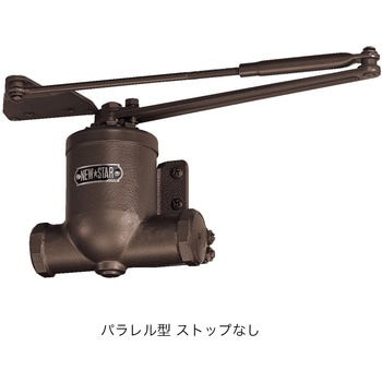 頑強なボディーと高性能なスプリングにより高開閉効率。アンティーク調を演出するのに最適。閉扉速度調整は2バルブ方式。ラッチング角度は調整可能。調整ネジ棒にて調整出来ます。ストップ角度はパラレル型が70°~180°、スタンダード型が70°~90°の任意の角度に設定可能。左右兼用タイプ。開き勝手により、アーム差込み方向が変わります。