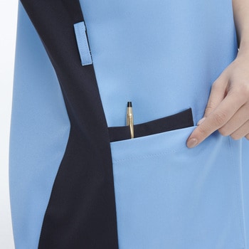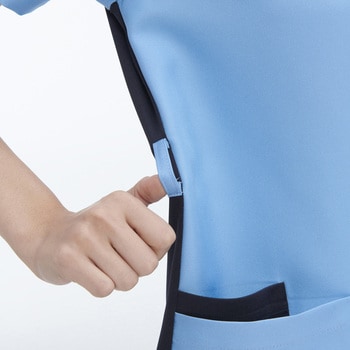 サイドファスナー開きの男女兼用スクラブです。バックスタイ ルの両サイドに配したニット素材が動きやすさと涼しさをご提供します。適度なゆとりのあるシルエットになっています。男女兼用左胸 ポケット(内側PHSポケット付)、右腰ダブルポケット、左腰ポケット