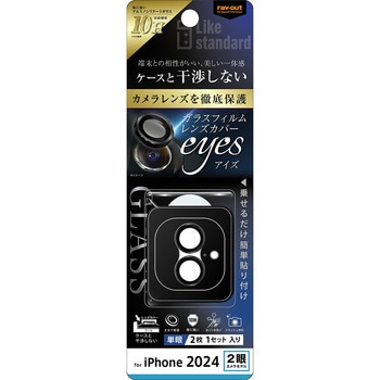 iPhone 16 / 16 Plus Like standard eyes ガラスフィルム カメラ保護 2枚1セット 割れにくい ハイブリッド 単眼 レンズカバー 硬度10H / ブラック