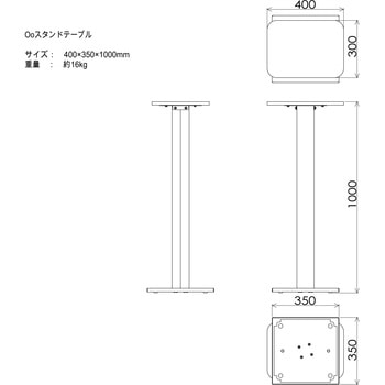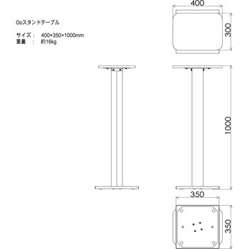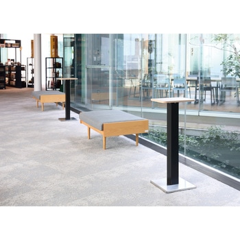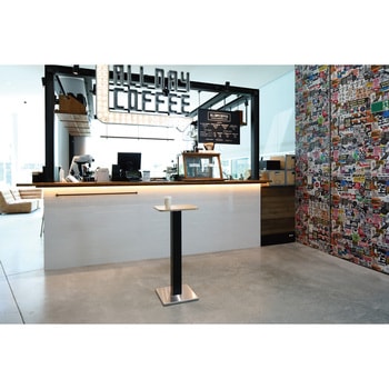 天板:メラミン化粧板、支柱:スチール粉体塗装、ベース:ステンレス
