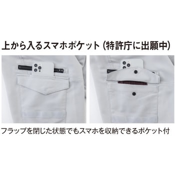 右サイドカーゴポケットには、フラップを閉じた状態でもスマートフォンを収納できる”上から入るスマホポケット”付き