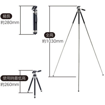 付属品:モバイルホルダー、アクションカメラ用トライポッドマウント、三脚ケース。ロッドアンテナのように引き伸ばす8段式三脚。重量も500mlペットボトル飲料より軽い約420gなのでバッグに入れて気軽に持ち運びできます。撮影アングルを自由に変えられる小型雲台付きです。ハンドル付きなので操作が簡単。縦位置撮影も可能です。付属のモバイルホルダーを使用し、スマートフォンを取り付けて撮影することができます。幅約59mm~約90mmまでのスマートフォンに対応しています。付属のアクションカメラ用マウントを使用してアクションカメラを取り付けて撮影することができます。持ち運びに便利な巾着式のケースが付いています。