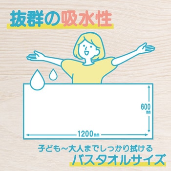 一般的なバスタオルと同じサイズ W1200×H600(mm)で使いやすい。