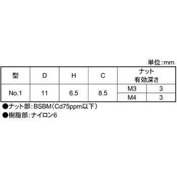 ナット部:BSBM(Cd75ppm以下)、樹脂部:ナイロン6