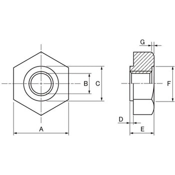 六角溶接ナット パイロット付爪なし(六角ウェルドナット位置決めガイド爪なし)利点パイロット径に合った下穴にパイロット部分を挿入するだけで、正確な位置決めができます。位置ずれを防止します。鉄板とのすき間がないため、確実なアーク溶接が可能です。※但し、スポット溶接はできません。手直し、再製作のリスクが減少します。