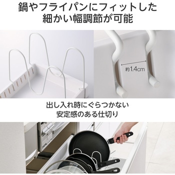 仕切りパーツは取り外し可能で、13.5mmピッチで幅を細かく調節できるため、手持ちの鍋やフライパンにフィットします。