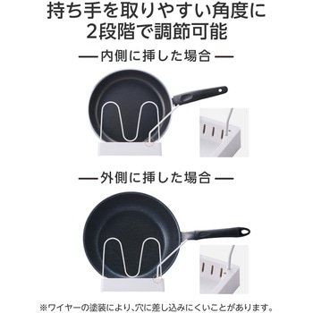 取っ手スタンドはフライパンのサイズに合わせて、2段階の位置調節が可能です。