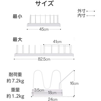 シンク下や引き出しのスペースに合わせて設置できる、伸縮ラックです。