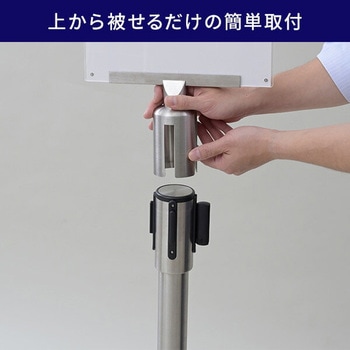 簡単取り付けでベルトパーテーションを案内板にできるオプションパーツ