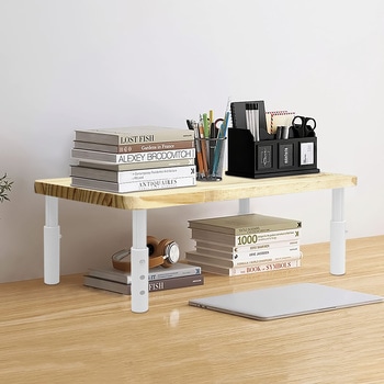 高さ調節機能付きで空間を有効活用できる卓上ラック。