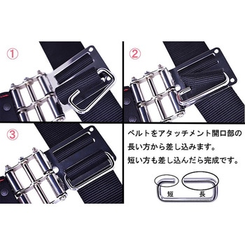 工具の抜き差しをより快適にサポートする長方形リング状の腰道具用アタッチメントです。50mm幅対応のベルト通しとベルトの間に装着し、ご使用ください。装着することで、落下防止コードやビットホルダーを下げることができます。8mmの開口部により、ベルトを外さなくても装着可能です。素材にSUS304(オーステナイト系ステンレス鋼)を採用し、耐久性・耐食性に優れ、錆に強い造りとなっています。非磁性の素材のため磁石に吸着しにくくなっています。