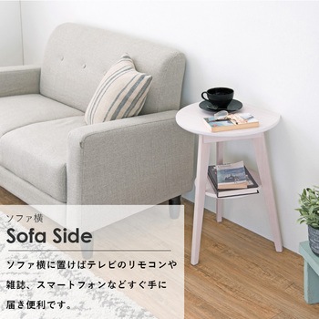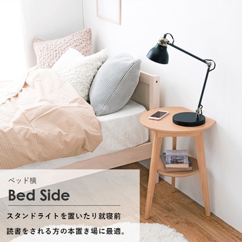 壁にぴたっり付けれるように設計されているサイドテーブル。丸形なのに壁に付けて置けるので、ソファサイドやベッドの横にもスペースを無駄にせず使えるアイデア商品です。 天板の下にはちょっとした物を置ける棚付き。軽量で組み立ても簡単なので、いろいろな場所で活躍します。ナチュラル・ダークブラウン・ホワイト