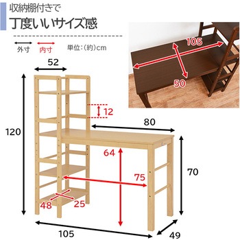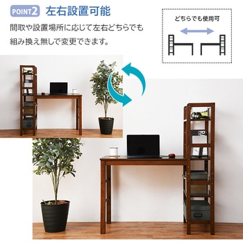 書斎や一人暮らしのお部屋にもピッタリな収納棚付きデスク。パソコンデスクや学習机として、作業スペースも広めなので色々使えます。設置は左右どちらでもOK。棚は可動敷なので、用途によって高さが変えられます。カラーは爽やかなホワイト、優しい印象のナチュラル、お部屋を引き締めるブラウンの3色から選べます。