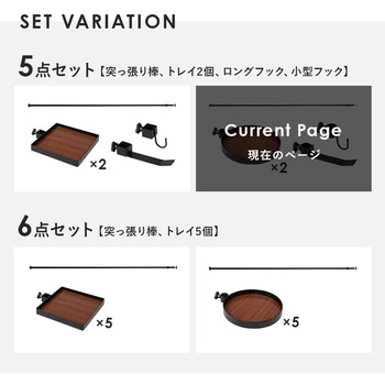 トレイとフックがついた突っ張りラック。これ一つで「掛ける」「置く」ができるので、散らかる服や小物をひとまとめにできます。スリムで場所を取らないのでリビングやダイニング、寝室や子供部屋はもちろん、玄関やトイレにも設置できます。壁や天井に穴を開けずに設置できるので、賃貸アパートやマンションの方にもおすすめ。トレイやフックはお好きな位置・順番で固定できます。<使用例>
