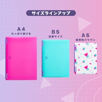 書きやすいリングが手にふれないから書きやすい。独自開発の"上下セパレート式リング"を採用。リングに邪魔されず、ストレスなく筆記できます。リーフの交換が可能リングノートなのにリングが開閉。差し替え・追加が可能。リングが開閉するので、途中での入れ替えも可能。市販のルーズリーフが使用できます。コンパクト従来のリングノート同様、表紙を360°折り返せる。スペースを取らず、コンパクト。デスク上での使用や、立ったままでの筆記にも便利。