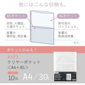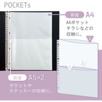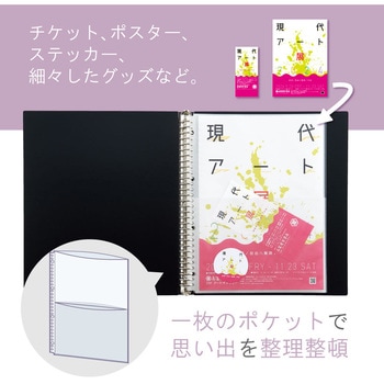 1枚のポケットにチケットとチラシなどをまとめて分類・収納できるクリヤーブック。