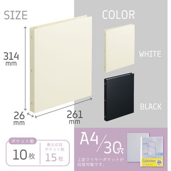 表紙/ポリプロピレン(生地厚1.0mm)、ポケット/ポリプロピレン(生地厚0.06mm)、とじ具/スチール