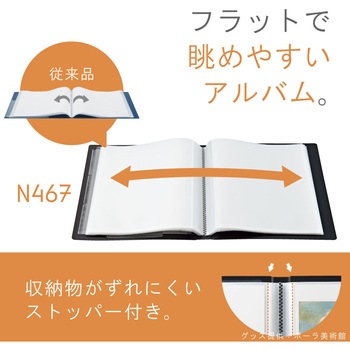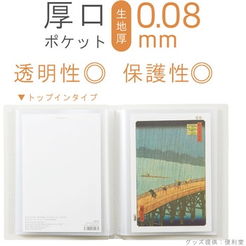 溶着部分がストッパーになりポストカードが中央にズレにくくめくりやすい。 大切なポストカードを保護できる厚口ポケット
