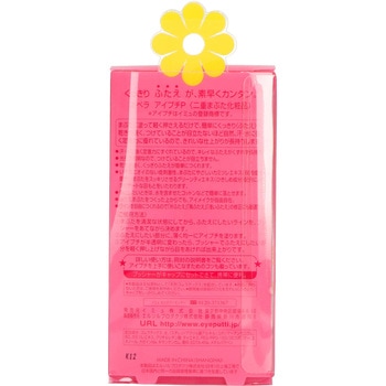 まぶたに塗って軽く押さえるだけで、簡単に二重まぶたができます。乾きが早く、つけている事が目立たないほど自然です。汗や水に強く、定着力に優れているので、きれいな仕上がりが長持ちします。ラインを自由に作れるので、片二重や奥二重などの修正にも最適。嫌なニオイのない低刺激性です。保湿成分のカミツレエキスを配合し、更にひきしめ成分のグリーンティエキスも配合。すっきりしたまぶたに整えます。水を含ませたコットンなどで簡単に落とせます。
