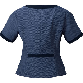 肩パッドなし、胸ポケットのインク染み出し防止生地使用、名札ポケット、印鑑ポケット、おうち洗濯可能、抗菌防臭加工、フロントファスナー開き