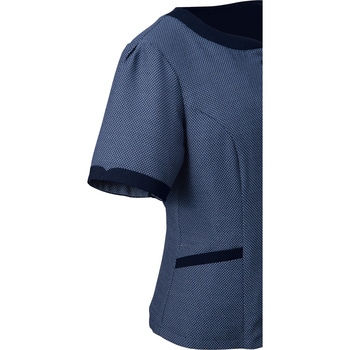 開きすぎないネックラインで、襟元綺麗なオーバーブラウス。