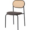 ラタン調×ファブリックのスタイリッシュなデザイン。ポリエチレン素材のラタン調デザインを施した背面と、ファブリック素材の座面の組み合わせが新鮮なチェア。あたたかみがありながらもスタイリッシュなスチールの細脚でぐっと引き締まった印象も与えてくれます。