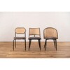 ラタン調×ファブリックのスタイリッシュなデザイン。ポリエチレン素材のラタン調デザインを施した背面と、ファブリック素材の座面の組み合わせが新鮮なチェア。あたたかみがありながらもスタイリッシュなスチールの細脚でぐっと引き締まった印象も与えてくれます。