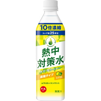 熱中対策水はレジャー・スポーツ・仕事・家事・育児に熱中している全ての人をサポートする飲料です。 汗をかいた時、水分とともに体に必要な塩分などの成分が失われてしまいます。汗に近い成分を補給できる熱中対策水があなたの頑張りを応援します。10倍濃縮タイプでコップ約25杯分(1杯200mlの場合)