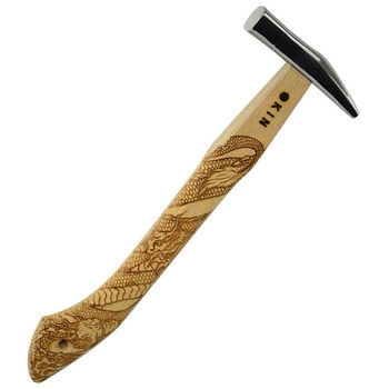 巻龍 ハンマー柄 350mm (天然木・樫) / 仕込み部 8x22mm:マルキン印オリジナルの真直ハンマー柄に巻龍の彫込焼付加工を施したインパクトのある木柄。持ち手部分は直線的な形状で、やや肉厚なしっかりとした握り心地。柄の末尾に曲線を施し、よりすっぽ抜けにくく視覚的にも洗練されたデザインに仕上げました。振り下ろす際に力が逃げにくく、手触りの良いなめらかな曲線が打ち疲れを軽減します。