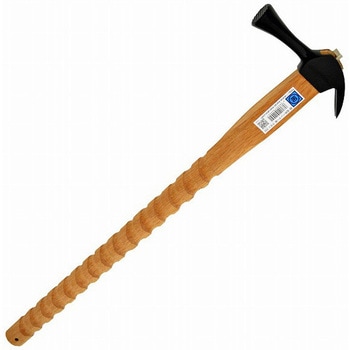 仮枠ハンマー 頭(止無)小:建設工事で型枠を組み立てる仮枠作業で使われる炭素鋼製のハンマーの頭部です。コンクリートを流し込む型枠を組立時にベニヤ板や角材などに釘を打ち込むのに適した頭部です。仮枠作業が必要になる様々なシーンで扱いやすいよう頭部はやや長いラッパな形状で、片側が打撃部、もう片側が釘抜き部となっています。打撃面に溝がなく、打ち込んだ際に相手素材に傷を付けにくい利点があります。