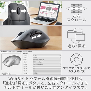 ホイールを傾けるだけで横スクロールが可能なチルトホイールを搭載しています。ホイールだけで上下左右にスクロールが可能で、ExcelやWeb使用時の作業効率が大幅に向上します。