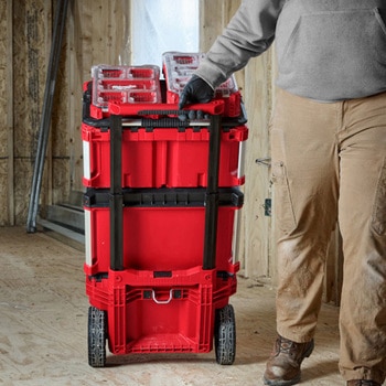 自由に組み合わせられるPACKOUT(TM) モジュラーシステム耐衝撃性ポリマー製移動に適したよりコンパクトな高耐久伸縮式キャリーハンドルIP65防水性能金属補強されたサイド部とラッチトレイ付きで収納性アップ228mm全路面タイヤ