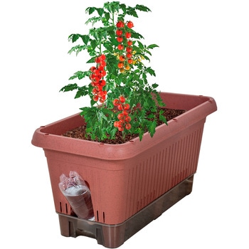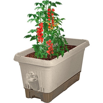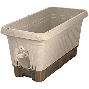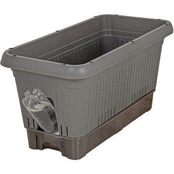 ジョーロでの水やり以外にペットボトルをセットするだけで簡単給水可能なプランター。ペットボトルをセットしておけば長期外出時も安心。 水溜トレーは残水量が一目で分かる。コロ付きで移動が簡単。土の換気が出来るサイドスリット付。