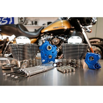 カム:S&S 550カムはビッグボア車両に合わせてデザイン。ギアドライブカムは、カムタイミングの精度を向上させ、純正カムチェーンテンショナーを不要にします。ギアドライブキットは、アウタードライブギアを含みます。