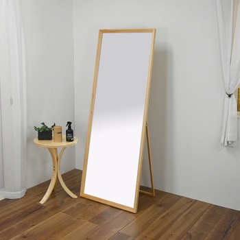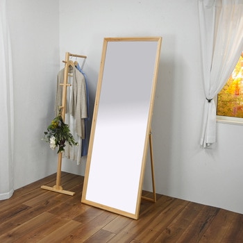 正面からの美観性を追求し、すっきりとしたデザインに仕上げました。温もりのある天然木のフレームが心地好い空間を演出します。スタンドを閉じれば、家具の隙間やクローゼットの中にも収納しやすいです。天然木のフレームでインテリアに合わせやすいスタンドミラーです。高さ約158cmのジャンボサイズで全身を映してのお出かけ前の身だしなみチェックに大活躍。