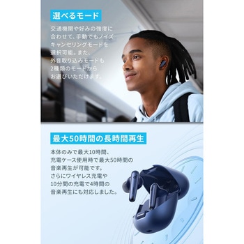 セット内容Soundcore Liberty 4 NC、充電ケース、イヤーチップ (5種) 、USB-C & USB-A ケーブル、クイックスタートガイド、安全マニュアル、カスタマーサポート質量(g)約5 (イヤホン本体 片耳) / 約60 (充電ケース含む)寸法(cm)約5.7×5.7×3.0充電時間約1時間(イヤホン) / 約3時間(充電ケース USB-Cケーブル使用時) / 約3.5時間(充電ケース ワイヤレス充電使用時)保証期間18ヶ月保証 + 6ヶ月 (Ankerで会員登録後)防塵防水性能IPX4再生可能時間通常モード:最大10時間 (イヤホン本体のみ) / 最大50時間 (充電ケース使用時)、ノイズキャンセリングモード:最大8時間 (イヤホン本体のみ) / 最大40時間 (充電ケース使用時)、LDAC使用時:最大6時間 (イヤホン本体のみ) / 最大30時間 (充電ケース使用時)通信規格Bluetooth 5.3充電端子USB-C / ワイヤレス対応コーデックSBC / AAC / LDAC内容量1個