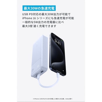 最大30W急速充電:USB PD対応最大30W出力が可能でiPhone 15シリーズにも急速充電が可能です。一般的な5W出力の充電器に比べて最大3倍速く充電できます。※一般的な5W出力の充電器でiPhone 15を0%から30%まで充電した場合との比較(Anker調べ)