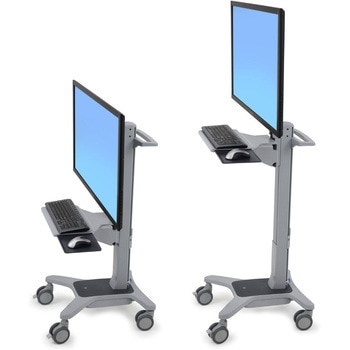 キャスター付きカートタイプの昇降式ワークステーションです。ハンドル付きで可動性に優れています。