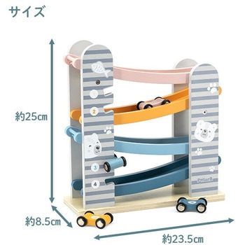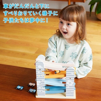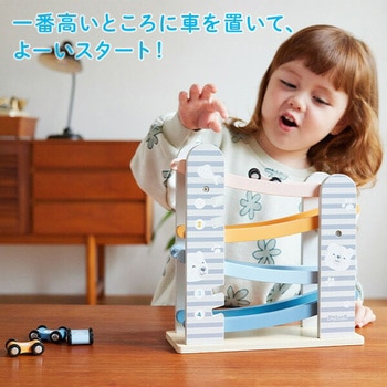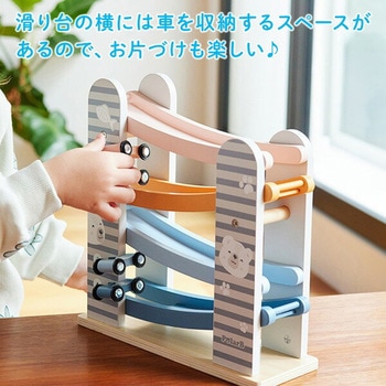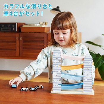 カラフルな滑り台と車4台がセットのカースライダー一番高いところに車を置いて、よーいスタート!車がだんだんと下にすべりおりていく様子に子供たちは夢中に滑り台の横には車を収納するスペースがあるので、お片づけも楽しい♪北欧テイストでやさしい色合い男の子、女の子、どちらのギフトにもおすすめ
