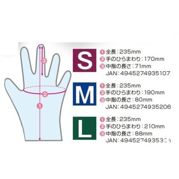 S(※参考値 全長235、手のひらまわり170、中指の長さ71