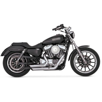 ショートタイプの2-2タイプエキゾースト。リアタイヤ手前でスラッシュカットされたエキゾーストはスタイリッシュな2重構造で、ショートタイプならではのバンス&ハインズ伝統のホットロッドサウンドを奏でます。また、車体を軽快に見せることはもちろん、リアタイヤの露出が増え、ホイールカスタムを目立たせる効果もあります。フルカバーヒートシールドでマフラー焼けが無く、美しい輝きを保ちます。
