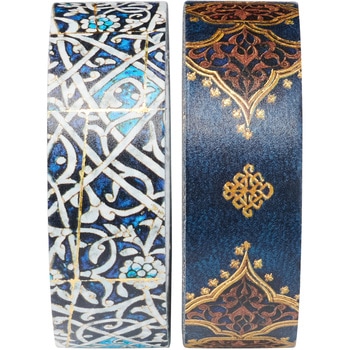 本物の和紙テープ紙、金色の箔、保護のためにやや光沢のある仕上げをほどこしたグラナダ&サファヴィー・インディゴの和紙テープは、バレットジャーナルの広がりにポップな色をもたらします。この2巻セットは、複雑なタイル細工や左右対称のパターンなど、イスラム模様の古典的な要素に着想を得ています。