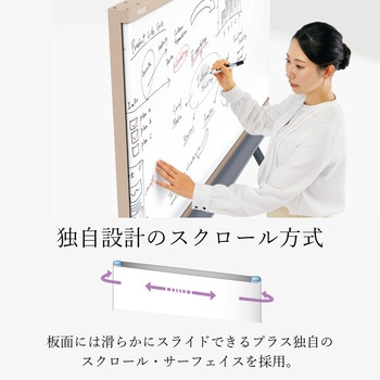 インテリアを重視したオフィスの感性にマッチする、デザイン性と機能性にこだわったホワイトボードINTERNA(インテルナ)。板面は滑らかにスライドできるプラス独自のスクロール・サーフェイスを採用。板面を消去することなく2面分使用可能。表面から裏面へシームレスにスライドさせながら書き込みできるとともに、サイドフレームが薄くなり書く人、見る人の思考や発想が広がる板面デザインに。