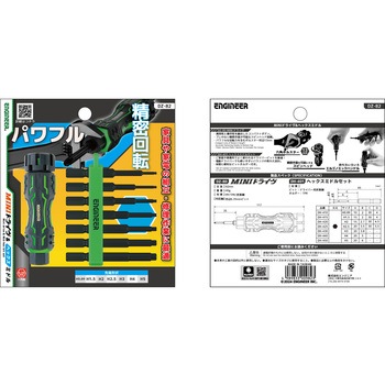 MINIドライヴ(DZ-80)と家具や家電の組み立て、修理に便利なヘックスビット7本組(DH-401)のセット。ビットはサビが発生しにくいリン酸マンガン処理。携帯性と操作性に優れたコンパクトグリップ。固着したネジもラクラク回せるボルスター(対辺13mm)付き。軸ブレが無く安定した精密作業が可能なスピンヘッドを搭載。収納、持ち運びに便利な専用ビットホルダー付き。