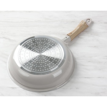 表面加工/内面:ふっ素樹脂塗膜加工 外面:焼付け塗装、本体:アルミニウム合金 はり底:ステンレス鋼 取っ手:フェノール樹脂(耐熱温度150℃)